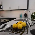 - ❓Existe uma cozinha disponível neste apartamento para uso dos hóspedes?Sim, este apartamento está equipado com cozinha totalmente equipada e oferece microondas, chaleira elétrica e refrigerador.